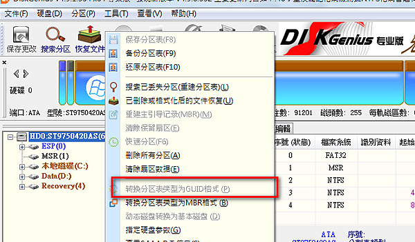再用 EasyU_3.3.2018.0130 內的 DiskGenius 分割HDD 設定成 GUID (HDD 要是空的呦)